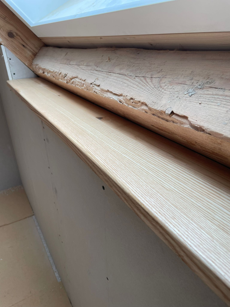 Eine Fensterbank unter einem Dachfenster aus Esche.